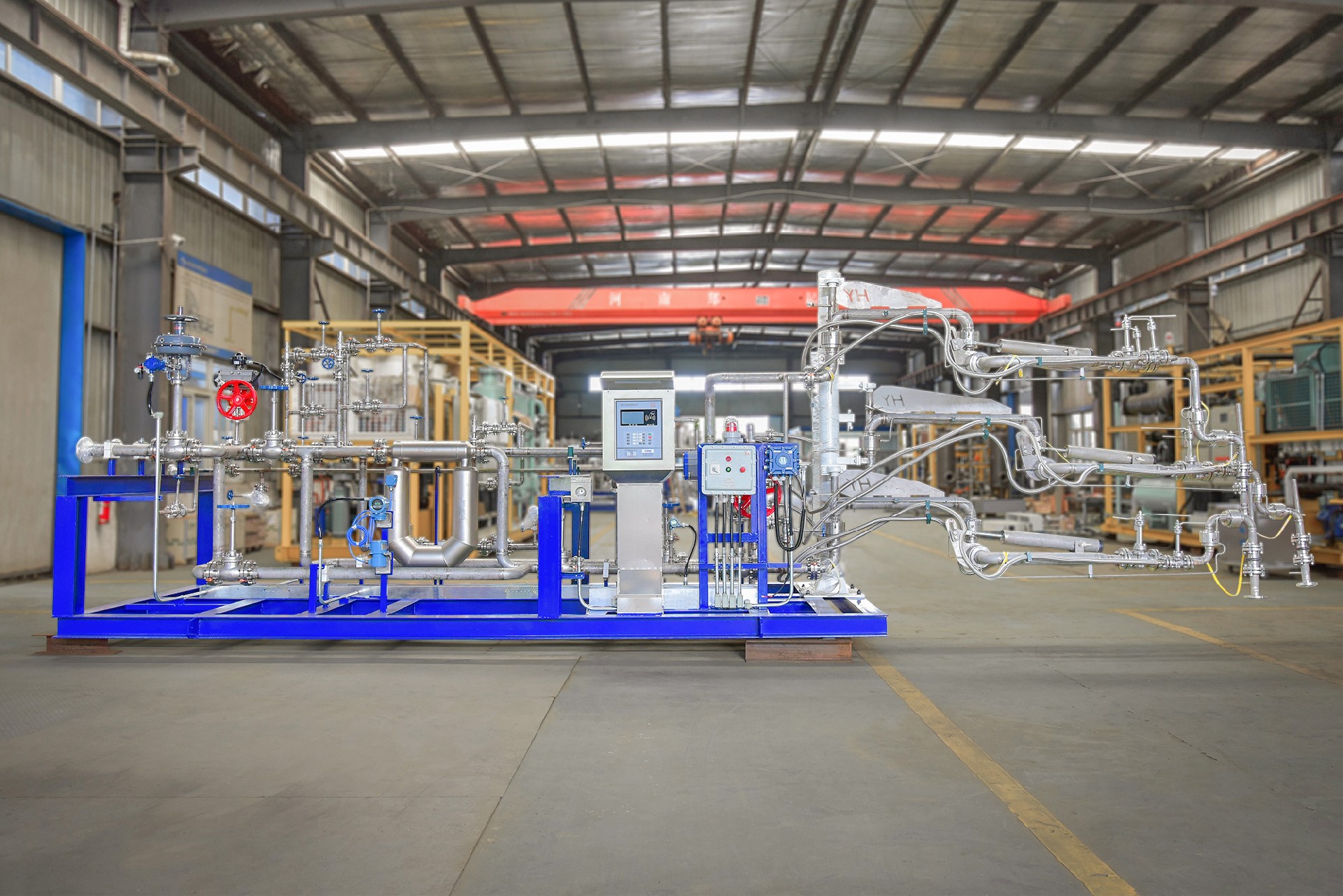 Due to the complexity of the process, LNG loading has more automatic control instruments in its armor. It consist of loading arm with recovery pipe, flow meters, static grounding protector, pressure transmitters, Flow control valve, emergency shut-off valve, related piping and batch controller.